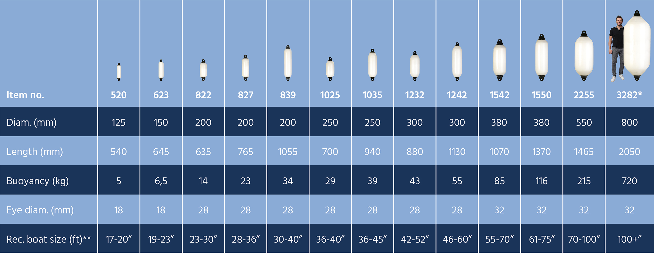 Meie laiaulatuslikust suuruste ja värvide valikust leiate vendrid, mis sobivad nii väikestele kummipaatidele kui ka suurtele megajahtidele.